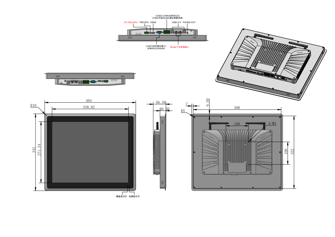 工控一体机采用全铝材质,定制独家压铸模具,高效的鳍片式散热结构, 能适应各种复杂恶劣的应用场景高粉尘,高低温环境下稳定工作。 整机配有多种专业接口,在满足常规应用场景需求的同时,还可根据应 用场景的不同增加定制功能与接口。